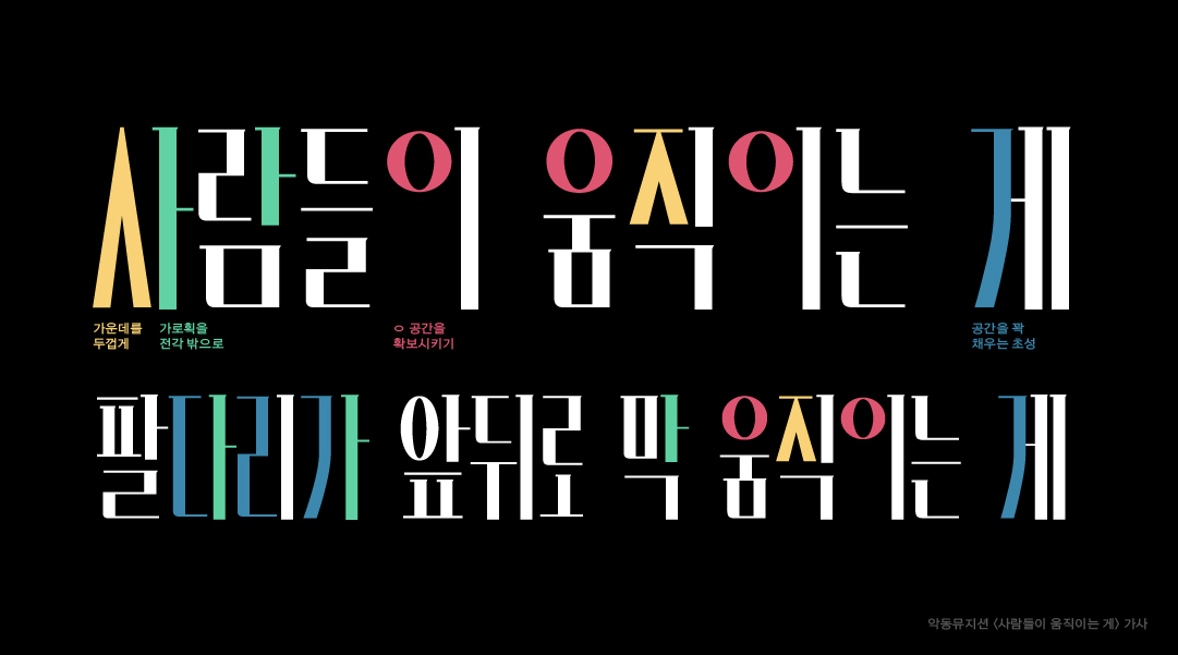 다양한 컨셉으로 활용이 가능하고 독특한 디자인 요소가 많은 서체 시리즈. 개성있는 디테일로 시각적 재미를 더하고 풍부한 이야기를 담을 수 있는 서체이다.