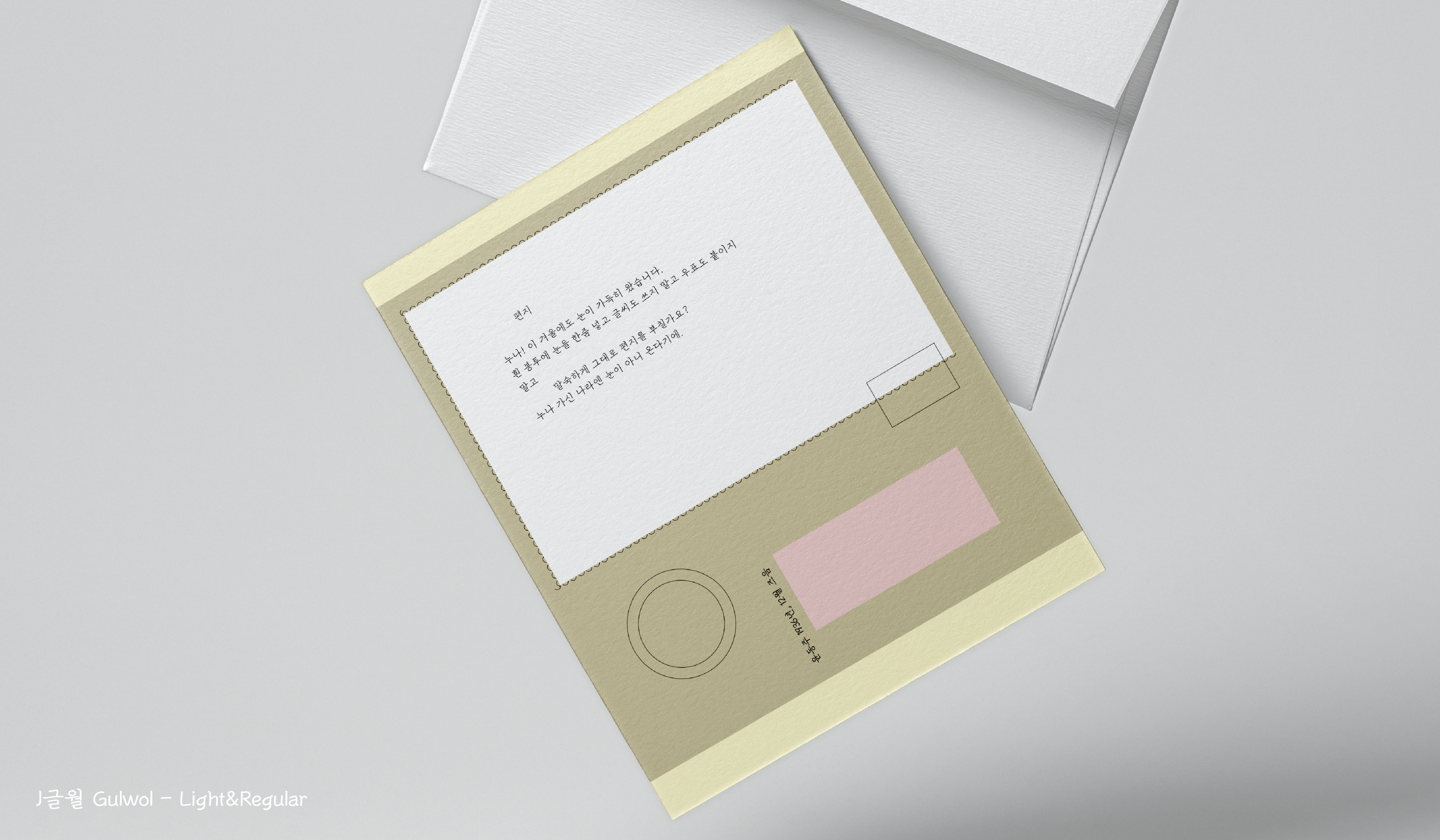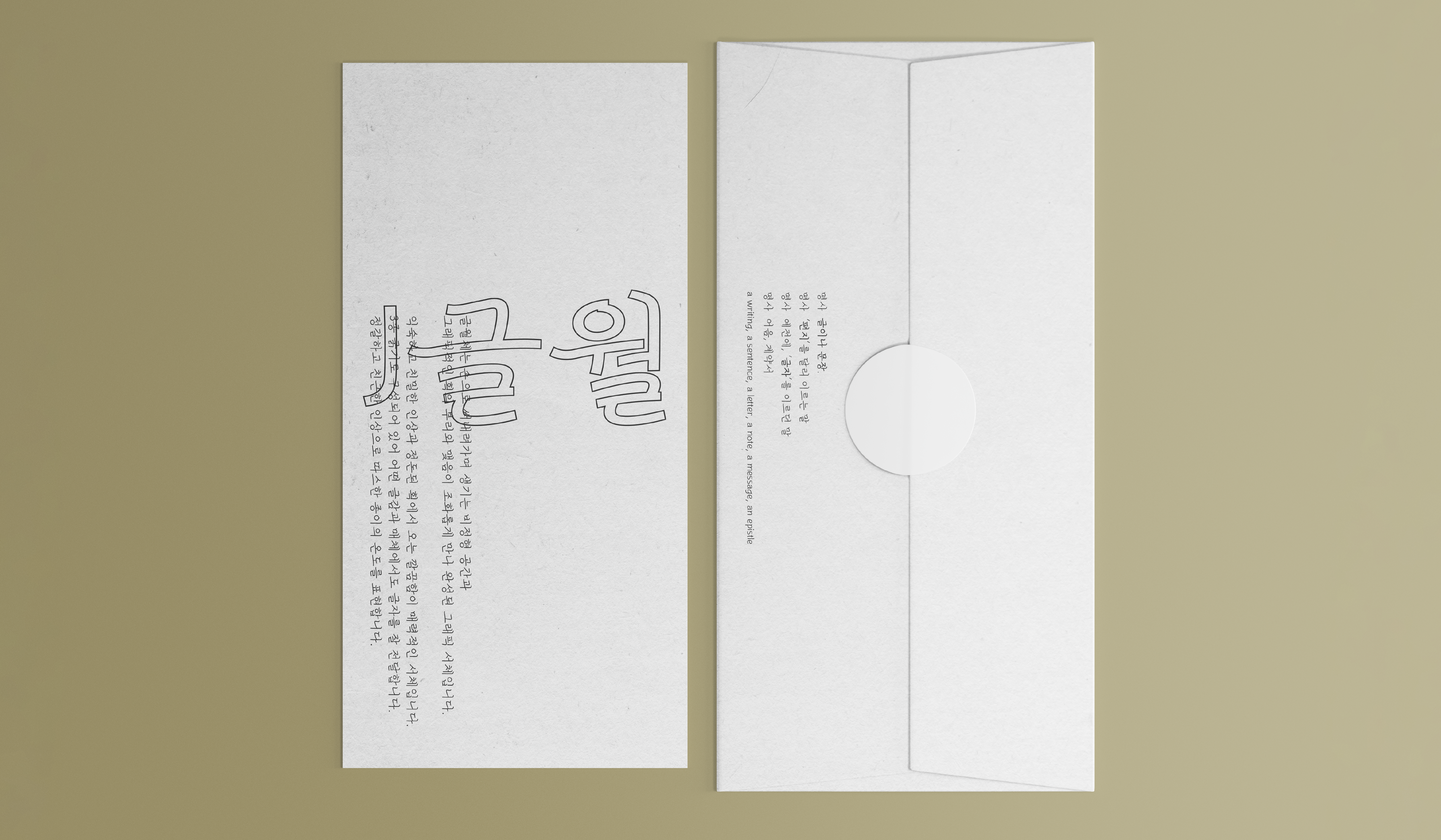 글월체는 손으로 써내려가면서 생기는 비정형 공간이 주는 손맛과 그래픽적인 획의 시작(부리)과 맺음이 조화롭게 만나 완성된 그래픽체입니다.