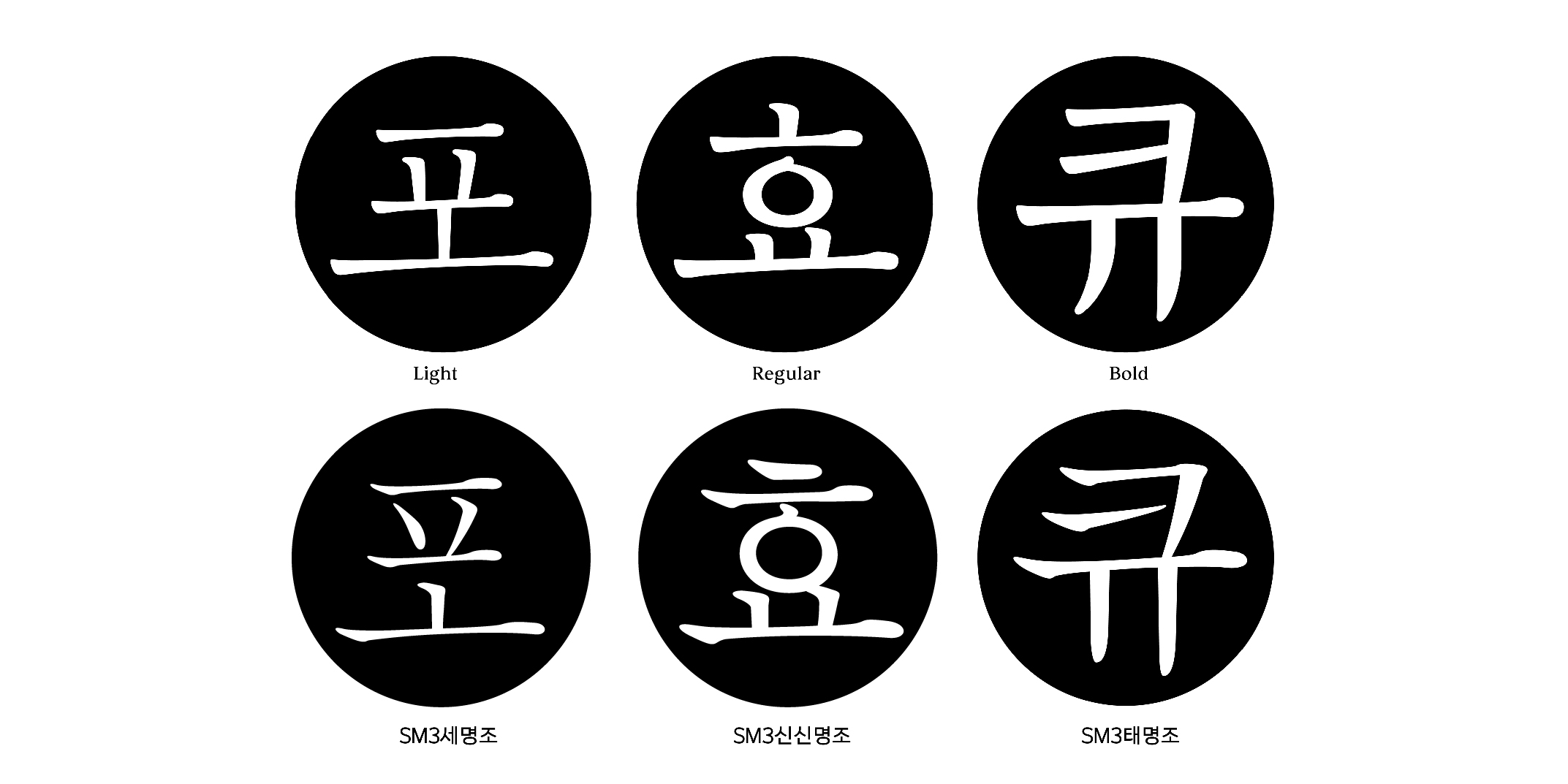 소담스러운 자소 디자인, 글자의 여백을 최대한 살리면서 자음과 모음의 균형에 초점을 맞추어 고전적이면서도 현대적인 미를 살리려 했습니다.
